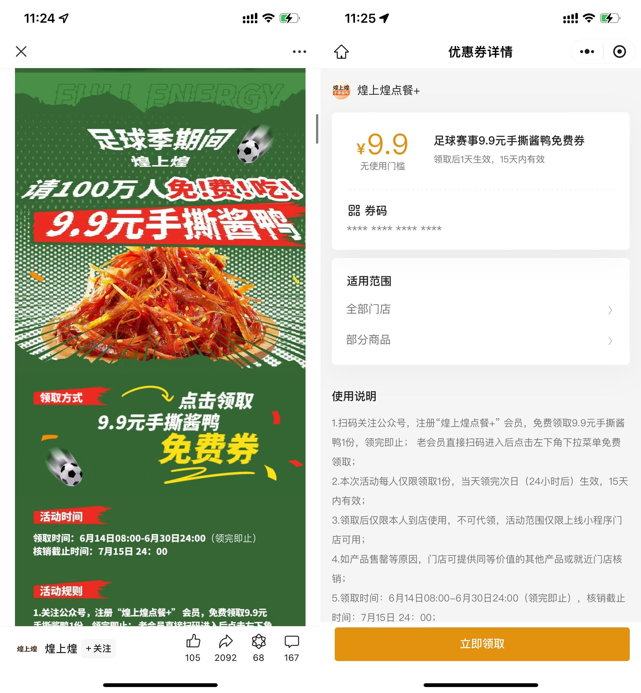 微信打开地址->进入直接领取->到点核销即可免费领!