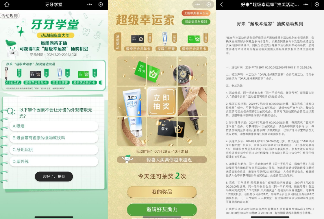 微信扫码参与->每周有一道题目,答题得次数抽实物或视频会员