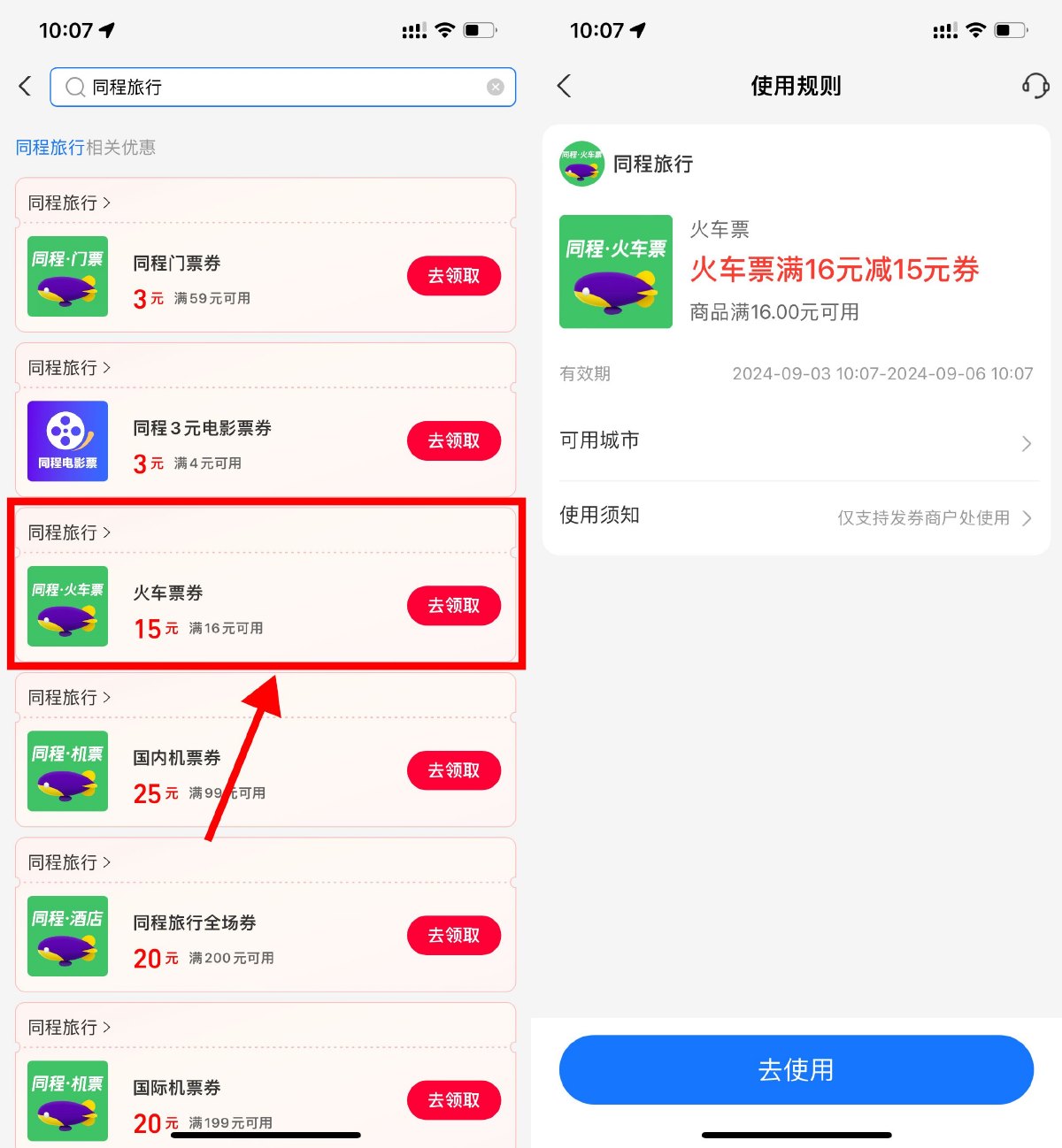 直接领16-15亓火车票券,刚好要出行的可以领下!