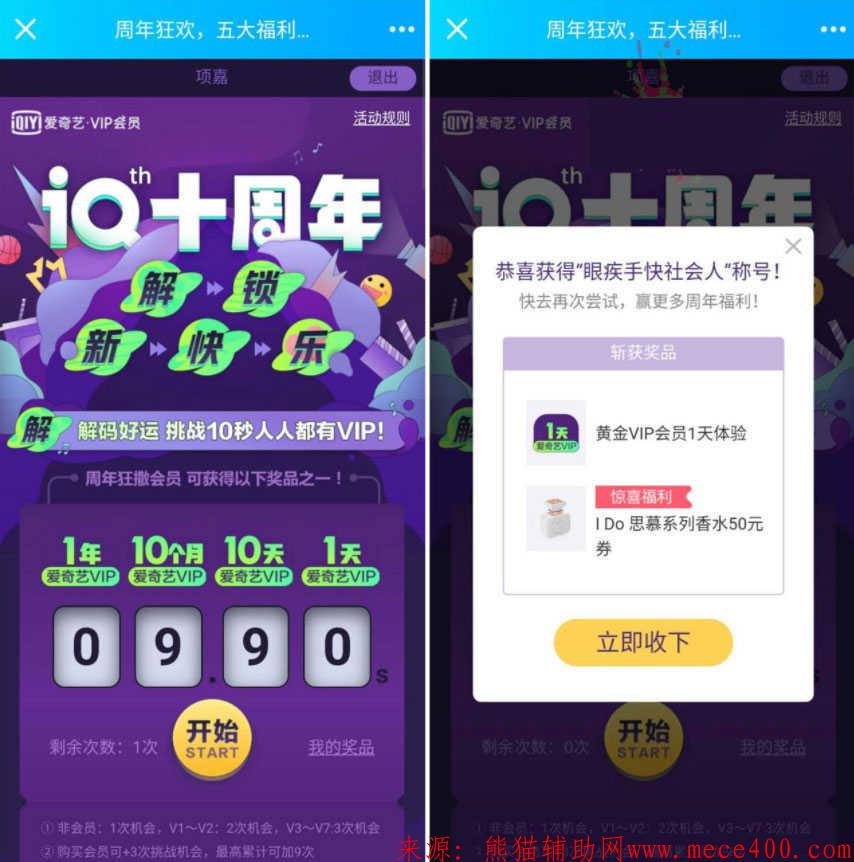 活动地址:https://vip.iqiyi.com/html5VIP/tenanniversary2020/index.html