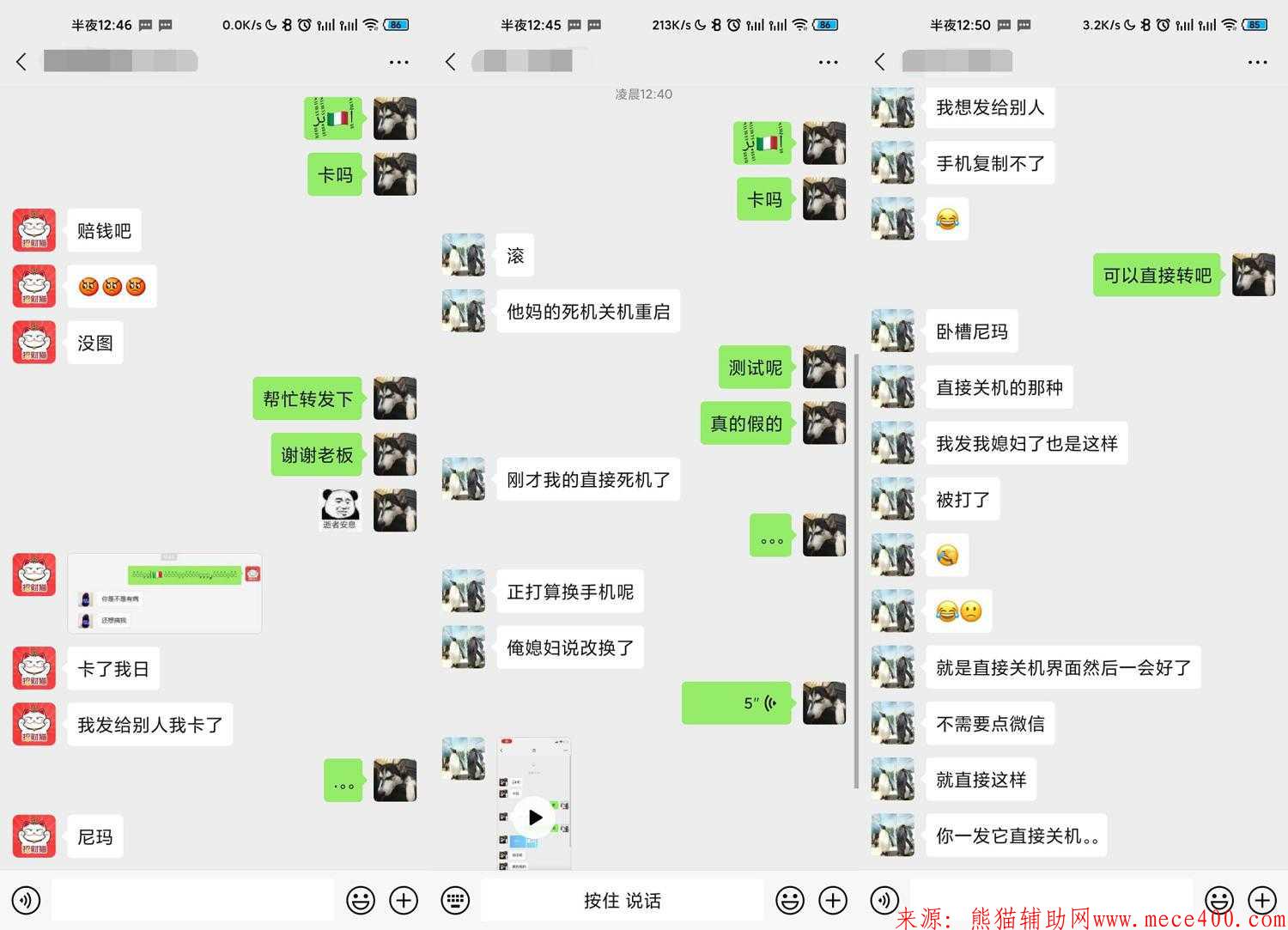 安装软件打开把代码复制发送给微信好友,只要ta点进来就会卡死,无论怎么重启也没用,目前亲测IOS和安卓都可以卡死,部分手机不管用!