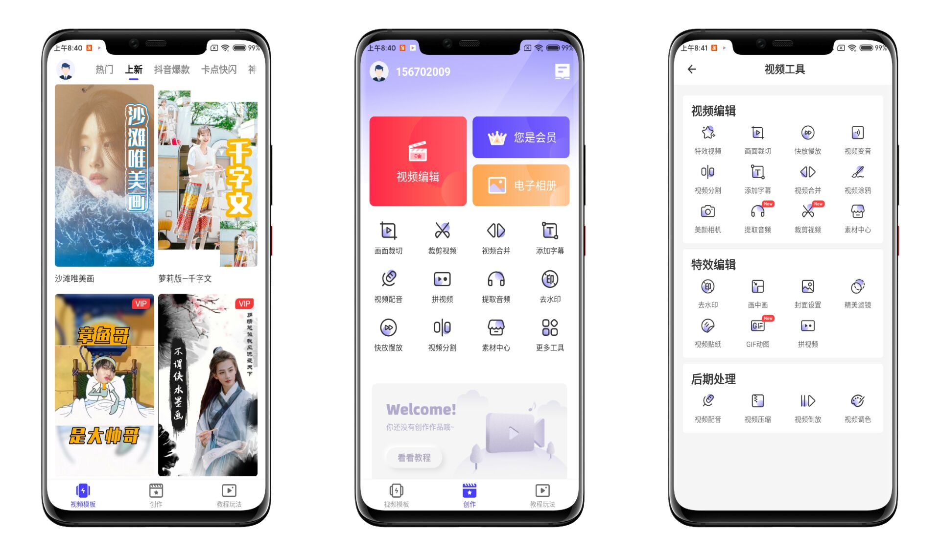 【使用说明】:一款功能强大的视频编辑软。该软件操作简单,内置了视频剪辑、拼接合并、裁剪分割、调速、倒放、打码、视频压缩、电子相册以及卡点视频制作等功能,可以帮助用户制作出不一样的特效视频。已经破解会员,安装就是VIP