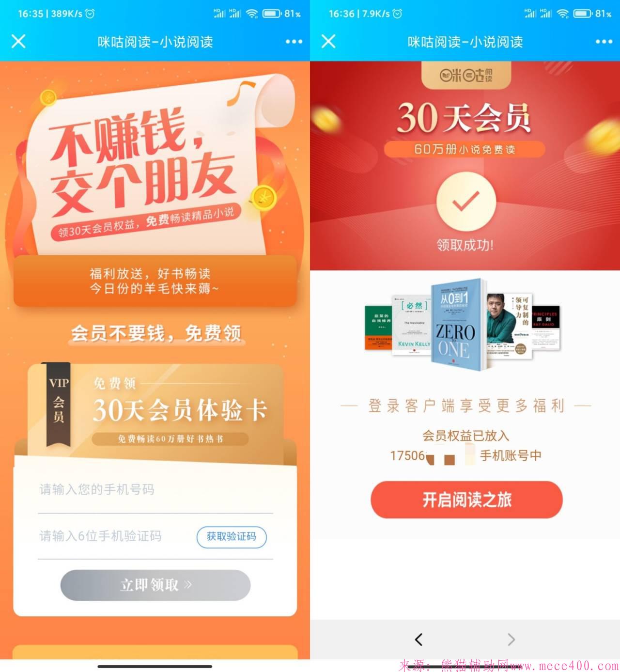 免费领30天咪咕阅读会员->免费畅读各种精品小说!