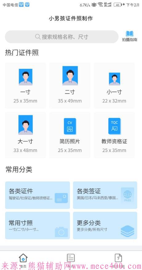 使用方法很简单,这边我就给大家看看页面哈,大家下载之后打开一键登录就好了,然后选择证件照尺寸制作保存就好了,然后打开相册就有了,是不是很方便