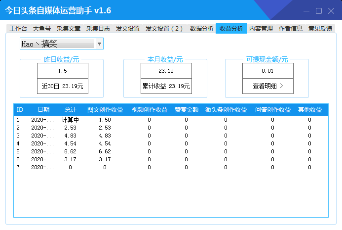 可以直接挂机解放双手,坐等收益~非常不错的今日头条账号管理工具