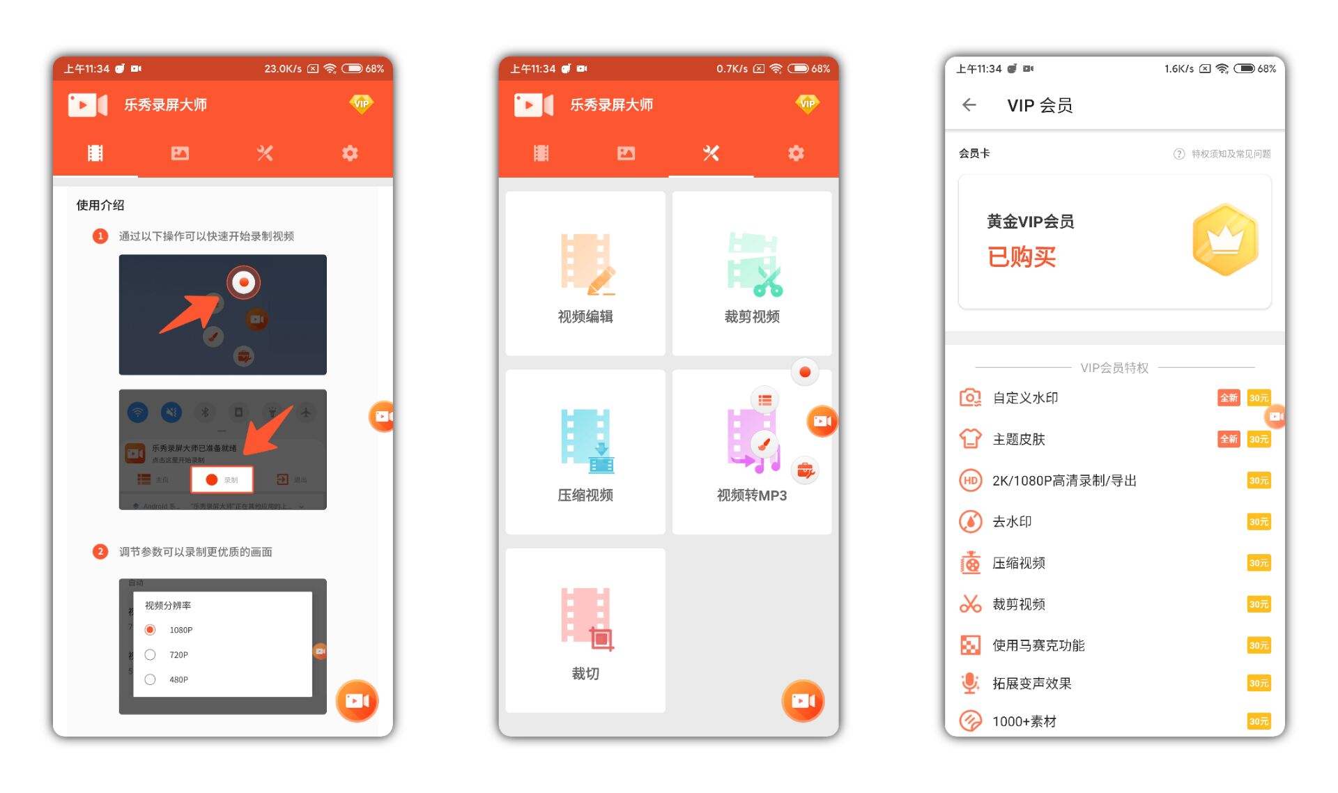 【使用说明】:一款有趣的视频录制软件,可以录制多种有特色的视频,随意设置多种参数,对录制好的视频进行编辑,添加文字特效,或者打上马赛克,添加滤镜等等,已经破解vip会员,解锁全部功能