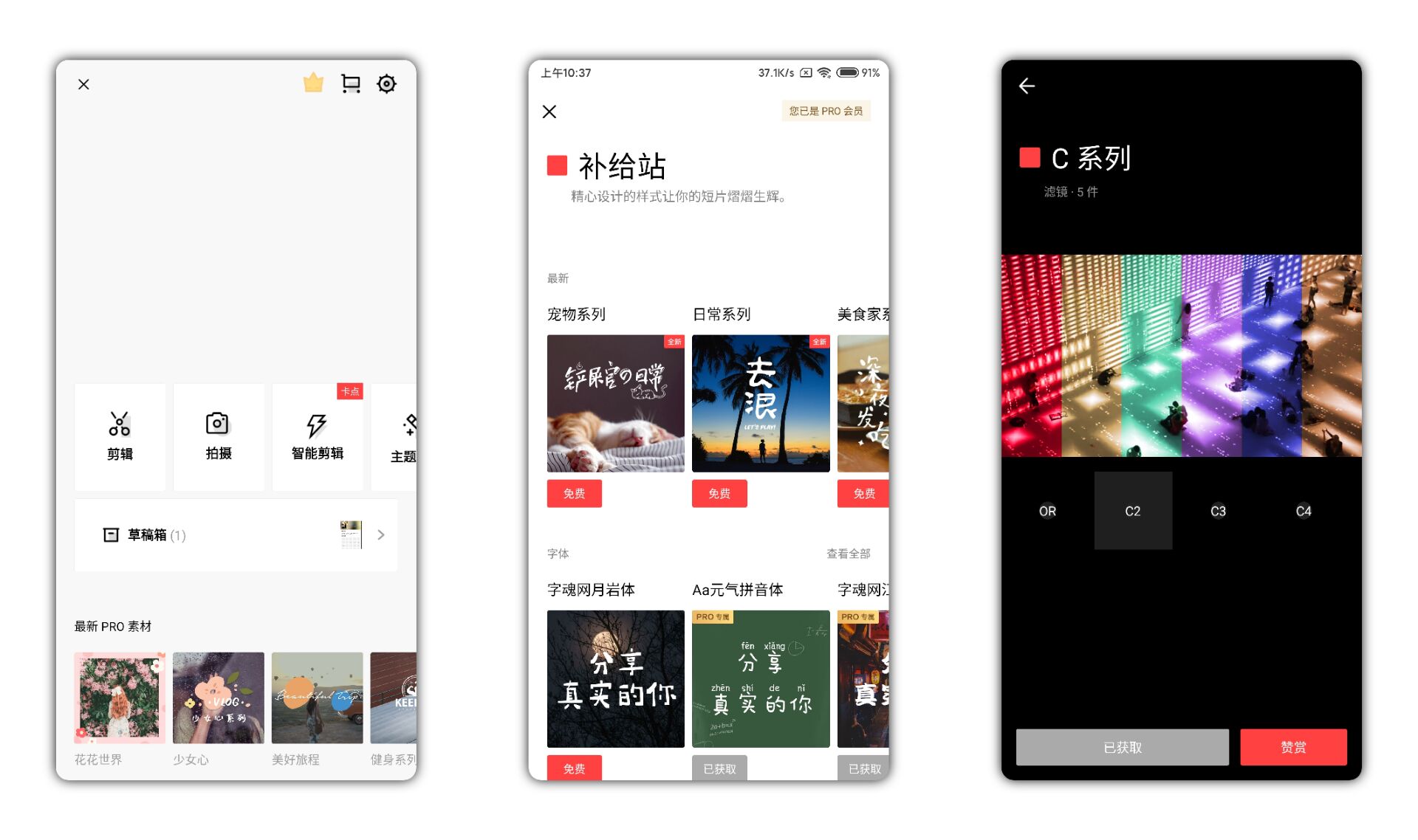 【使用说明】:一款编辑视频的软件,软件之中的滤镜及各种美化工具都可以随便使用,支持视频编辑工具,已经破解,解锁Pro版本,无需登录即可免费使用完整功能