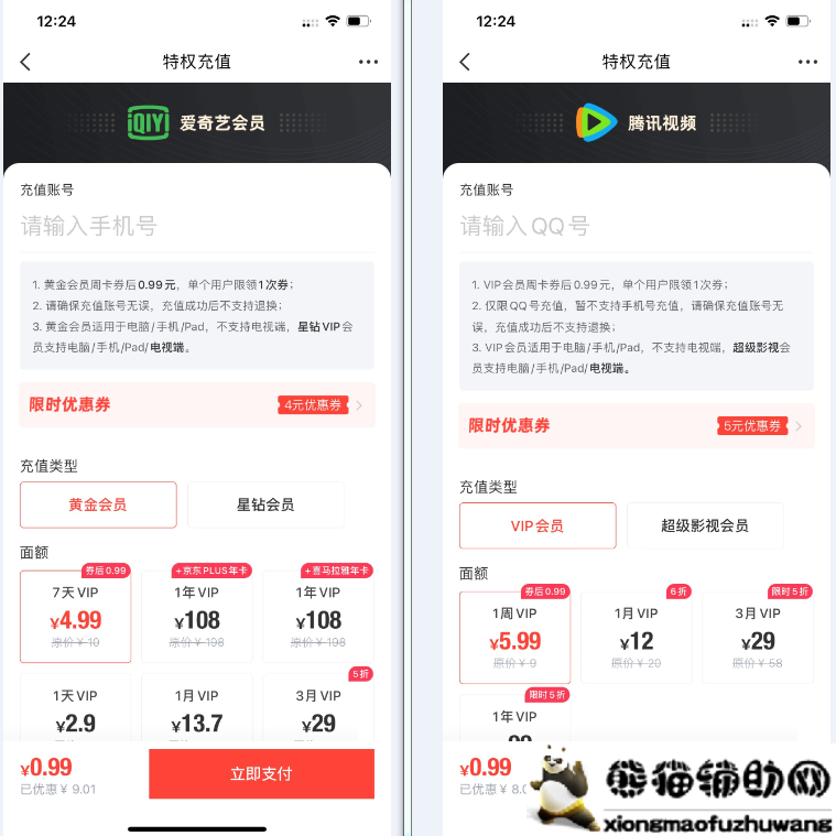步骤: 1.手机应用商店下载识货APP 2.选择底部导航里面的好价 3.上面有个 爱奇艺或者腾讯视频 4.领劵 下单即可 亲测稳秒到