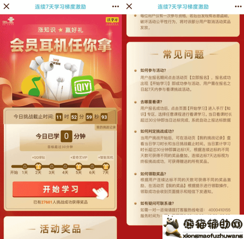 没参加的也可以参加:在活动入口报名成功后->去学习->挂后台就行了->超过30分钟就算达标->连续2天即可领取->奖品限量->没事的可以去参加下!