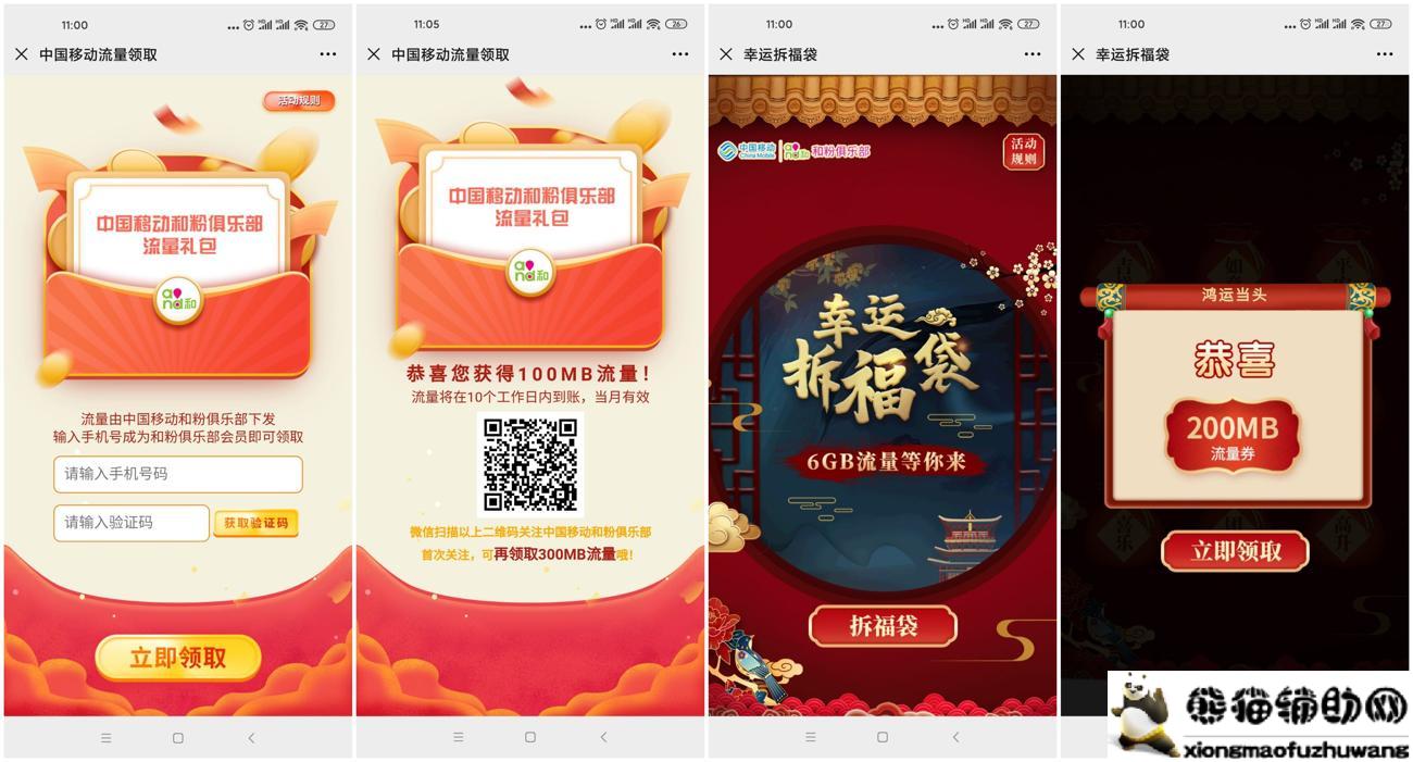 微信扫码进入->第一个活动直接领100M->第二个活动点拆福袋