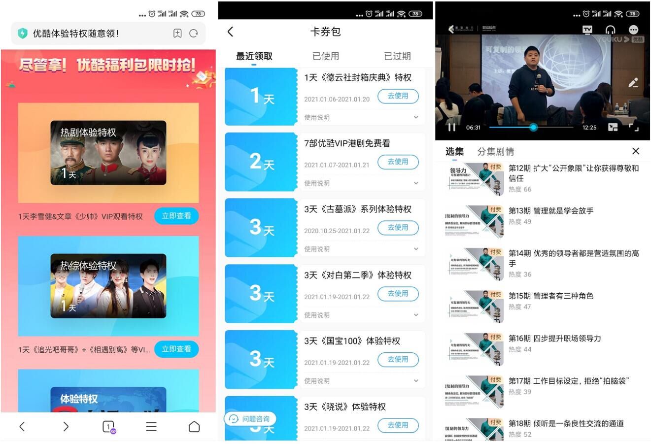领取后去优酷视频我的卡券使用查看即可!3~7天会员!