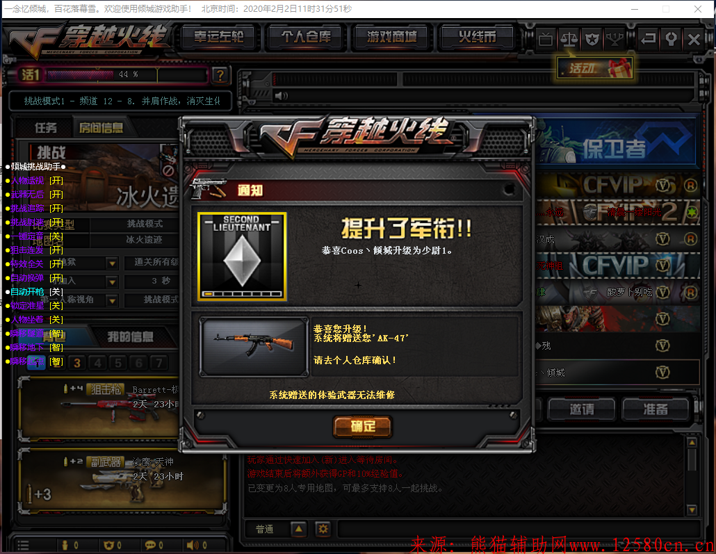 挑战模式推荐功能:挑战追踪、子弹加速、狙击连发、无视特效、锤子秒杀、其它功能默认即可!