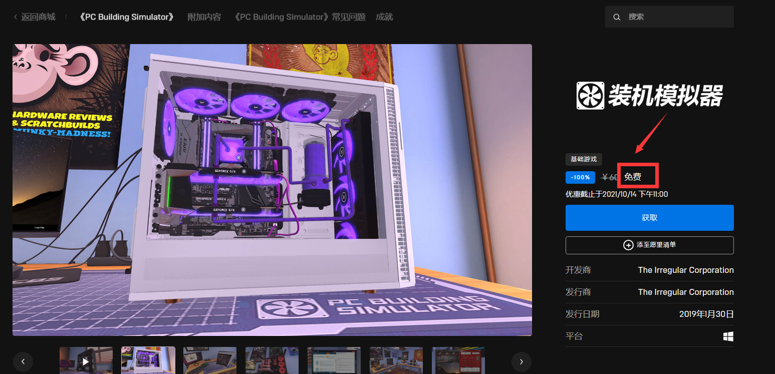 领取地址:https://www.epicgames.com/store/zh-CN/p/pc-building-simulator