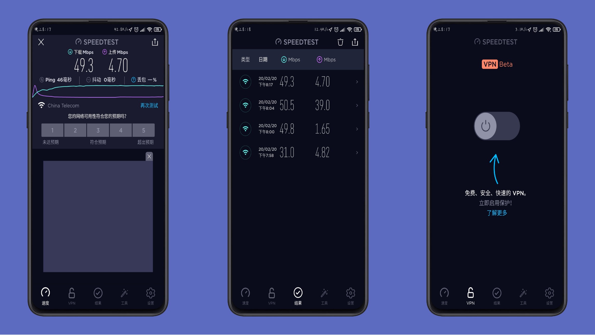 Speedtest实时测试手机网速去除广告