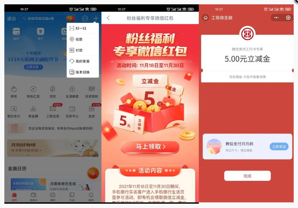 有工商银行卡的直接领!打开工商银行APP右上角扫码->闪退就打开微信!