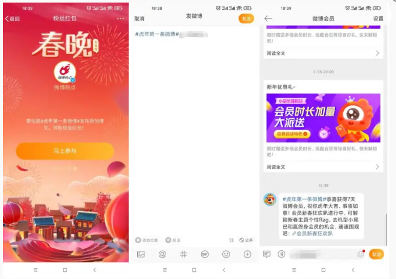打开微博APP扫码进入->随便发一条微博->会员自动秒到账
