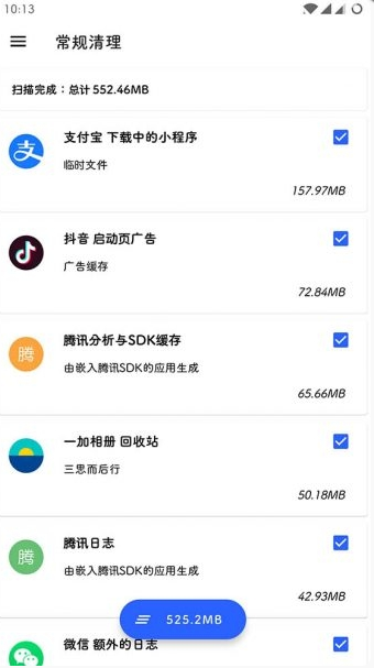应用通用清理,扫描本地所有应用的通用缓存和日志内容,这些都是app们运行产生的多余垃圾
