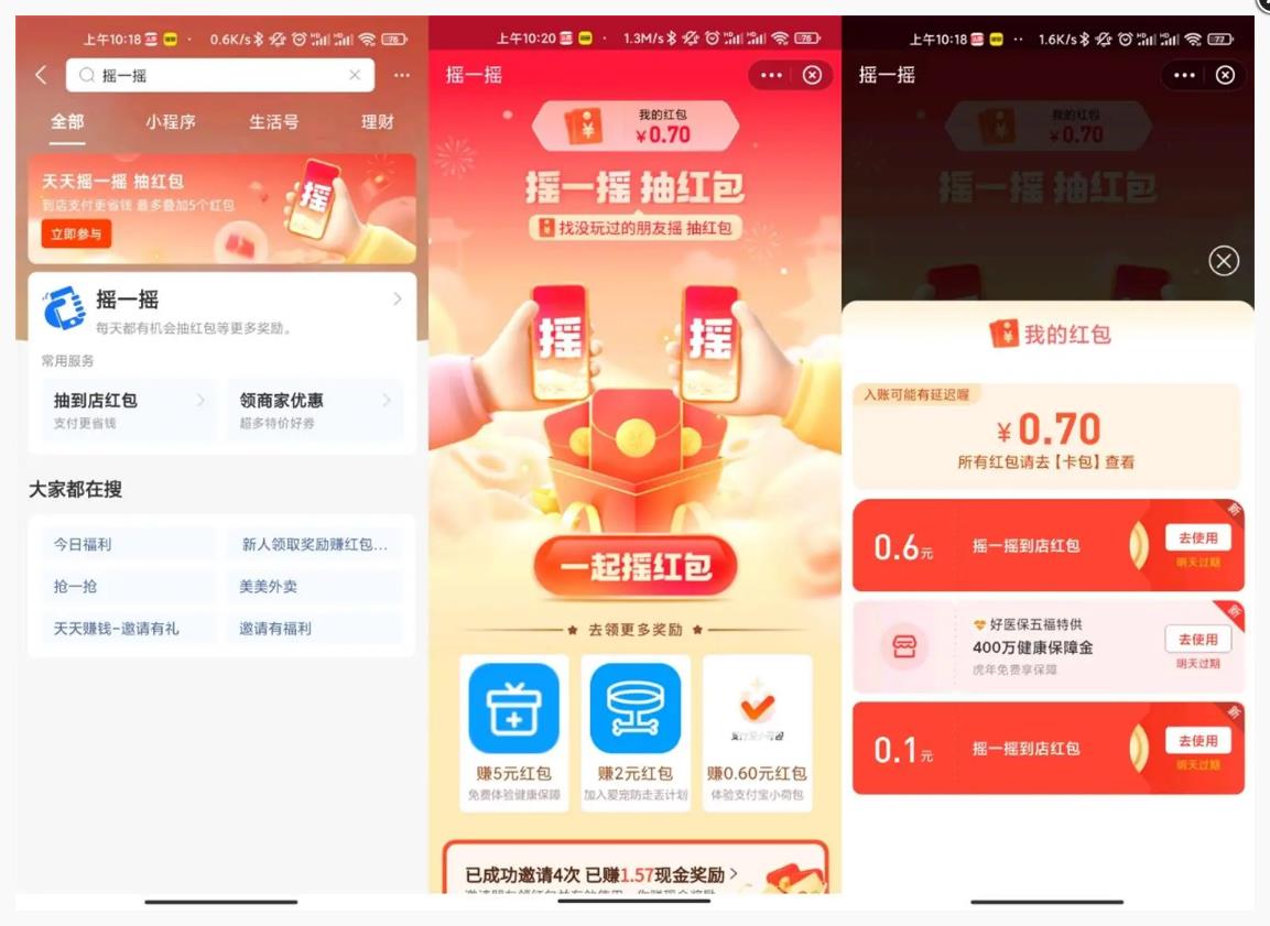 1、支付宝APP->顶部搜索“摇一摇”->点击横幅进入