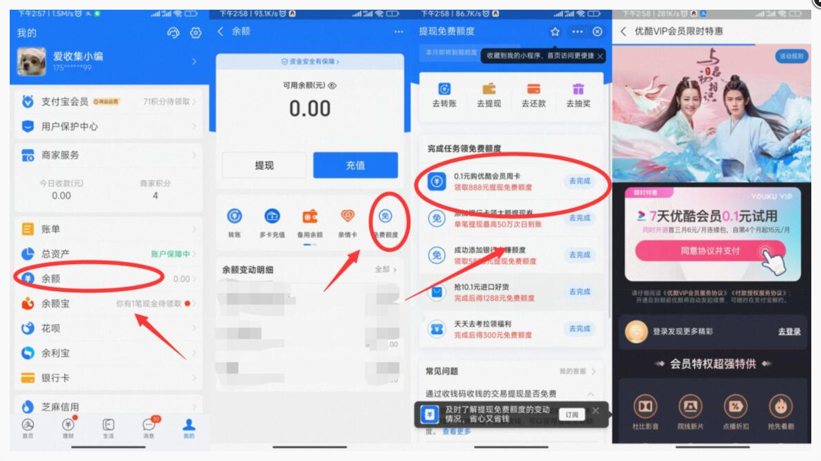 打开支付宝APP->我的余额->免费额度>如图开通就行了->记得关闭自动续费!