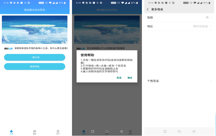 安卓微信超长空白个人签名 朋友圈瞬间变长