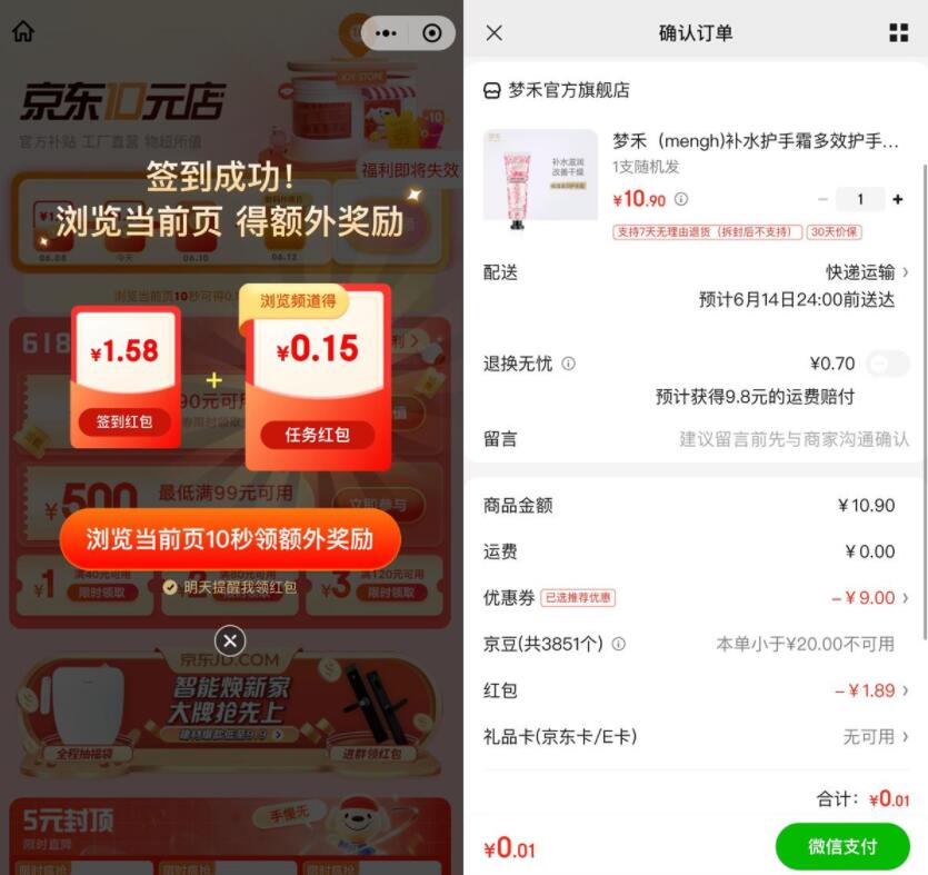 打开地址1和2领取购物红包,打开地址3领取10减9元券(前两天领过的不能再领了)->立即使用->找到自己想要的东西下单即可