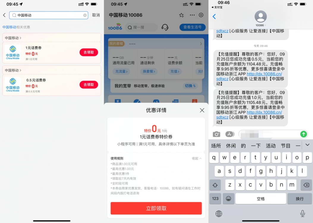 支付宝搜索“消费券”进入->再次搜索“中国移动”