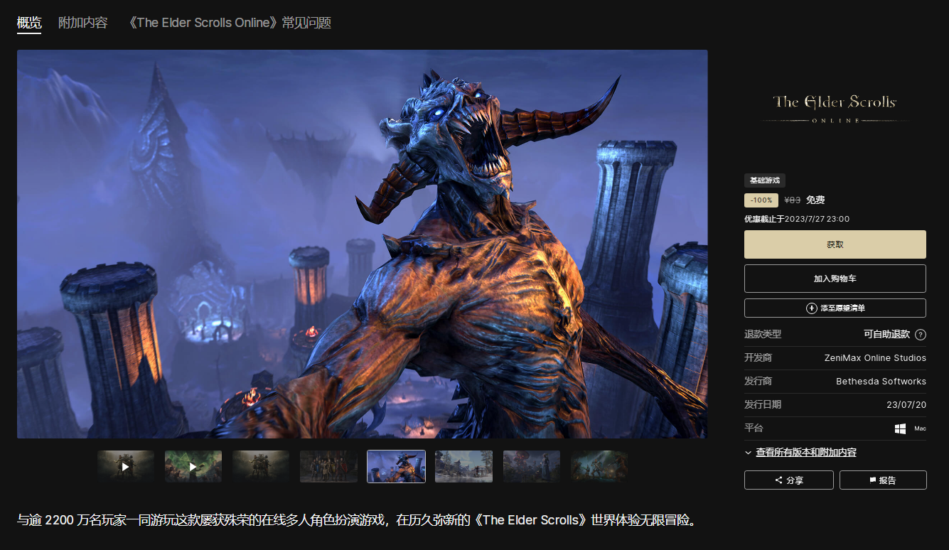 领取地址:https://store.epicgames.com/zh-CN/p/the-elder-scrolls-online