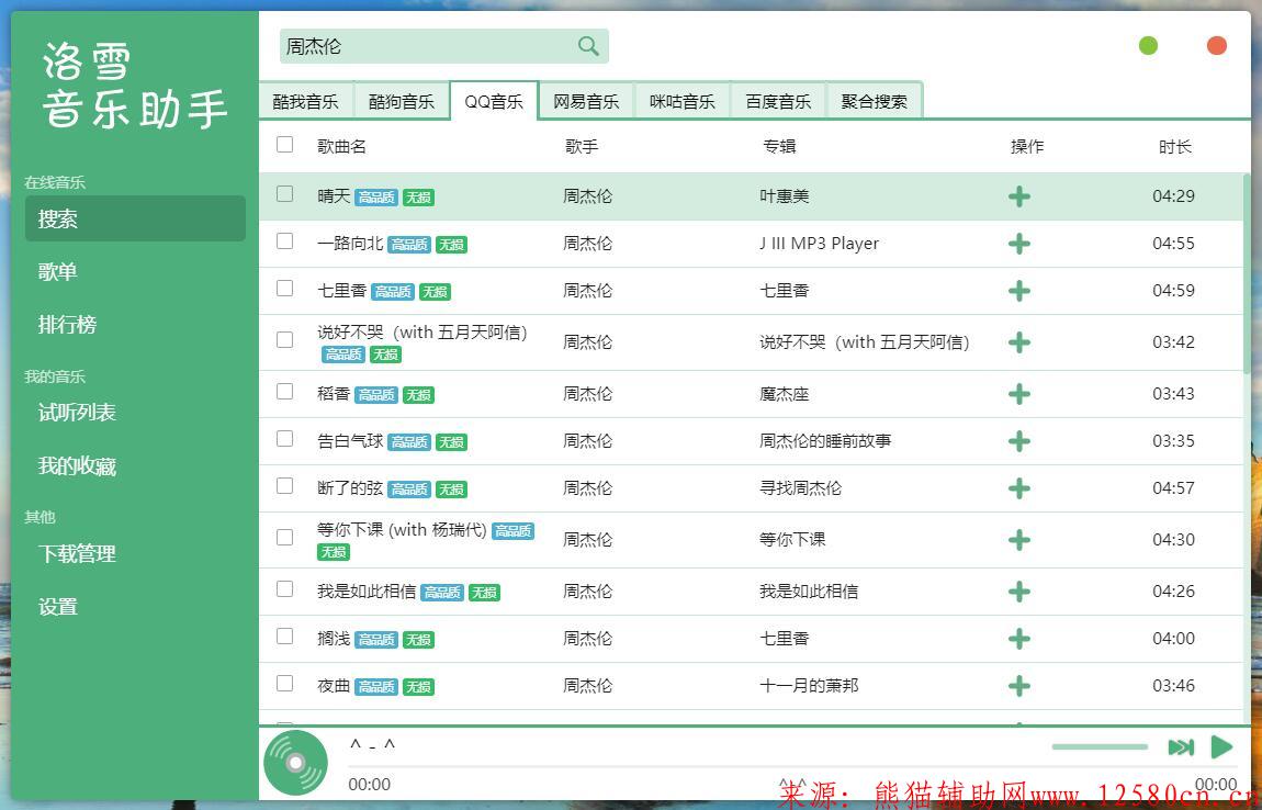 洛雪音乐助手桌面版,付费歌曲无损音乐下载软件。聚合各大音乐平台搜素,在线试听免费下载全网付费歌曲、无损音乐;采集酷狗音乐歌单库、酷我音乐排行榜;可以选音乐来源接口,支持下载歌词、专辑封面。