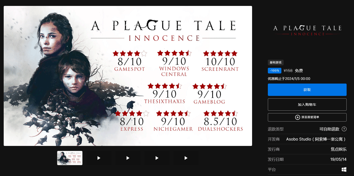 一款动作冒险游戏,游戏背景设定在黑死病泛滥时期的14世纪欧洲,