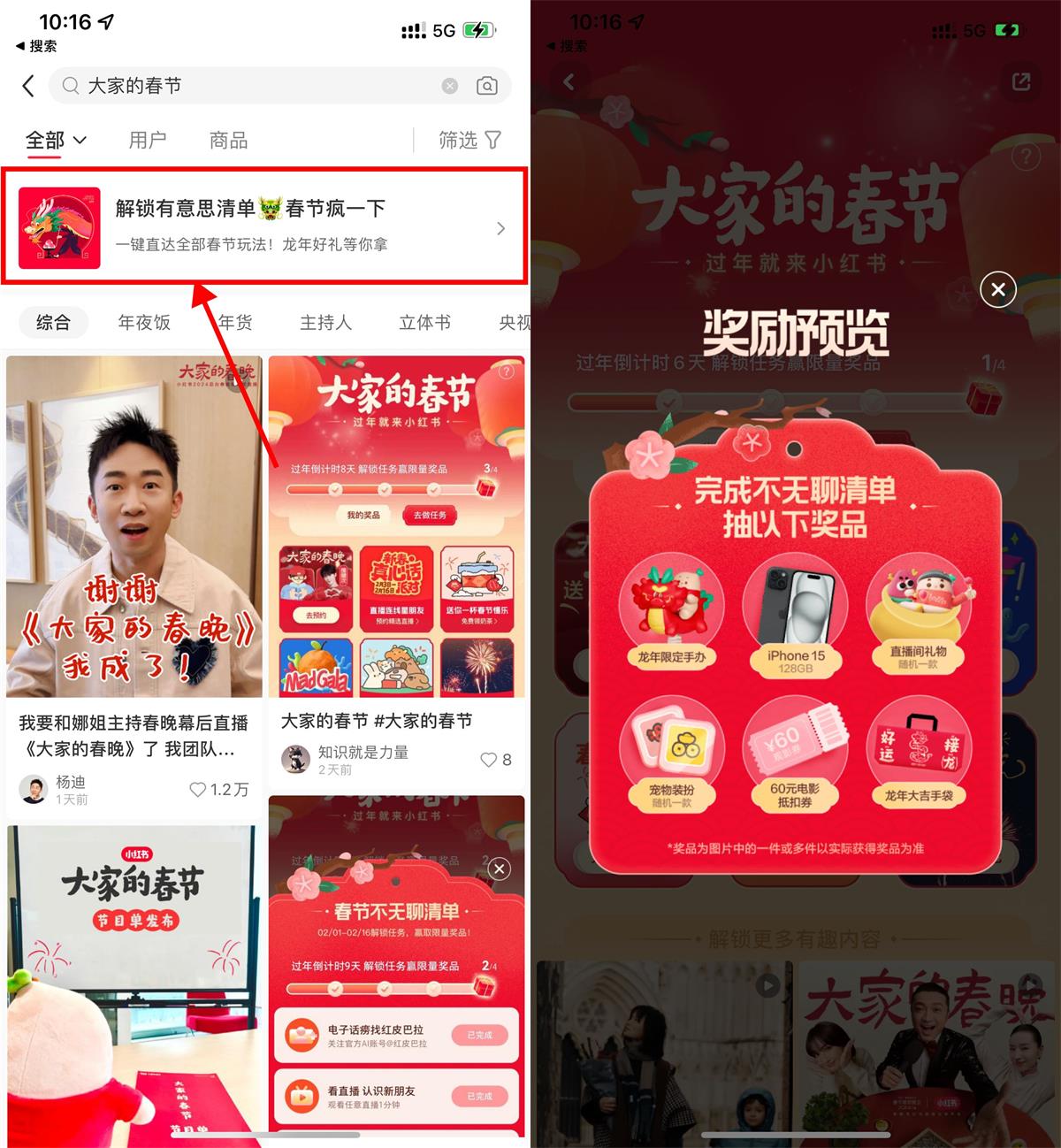 小红书APP搜索“大家的春节”->简单浏览得次数,抽实物或猫眼电影券等奖励 非必中