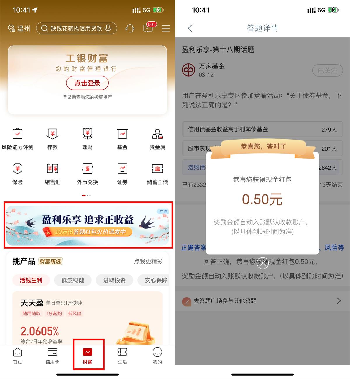 工行APP底部“财富”->点击横幅进入->