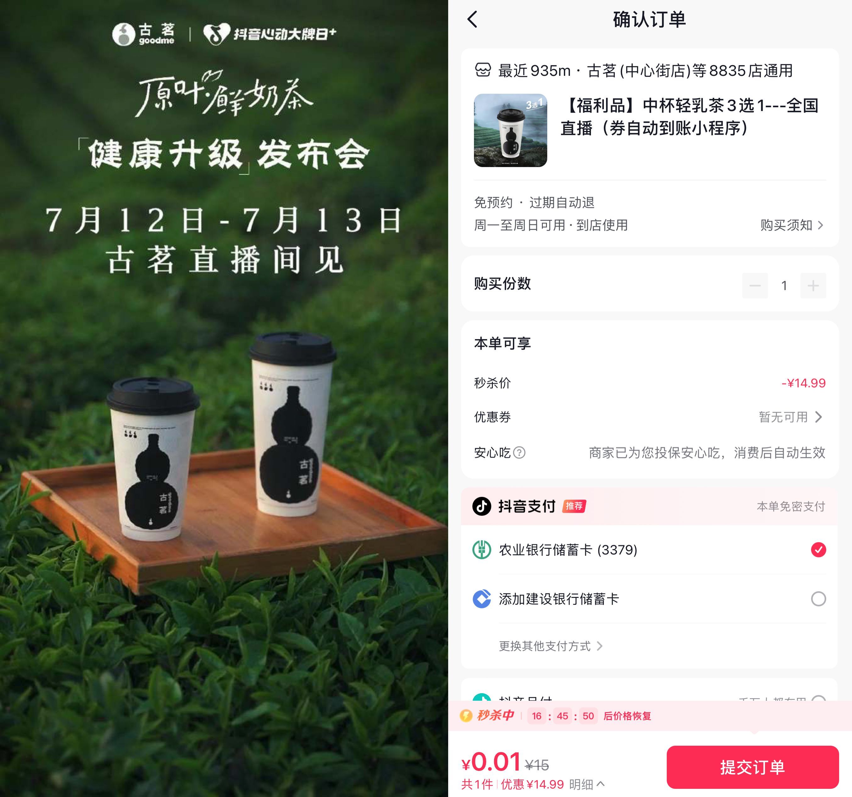 7月12日~13日抖音搜索“古茗”进入直播间,