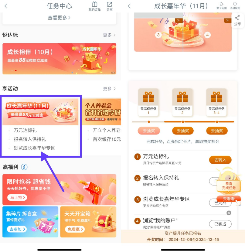 工行APP搜索“任务中心”->成长嘉年华->简单浏览集卡抽1~10亓立减金