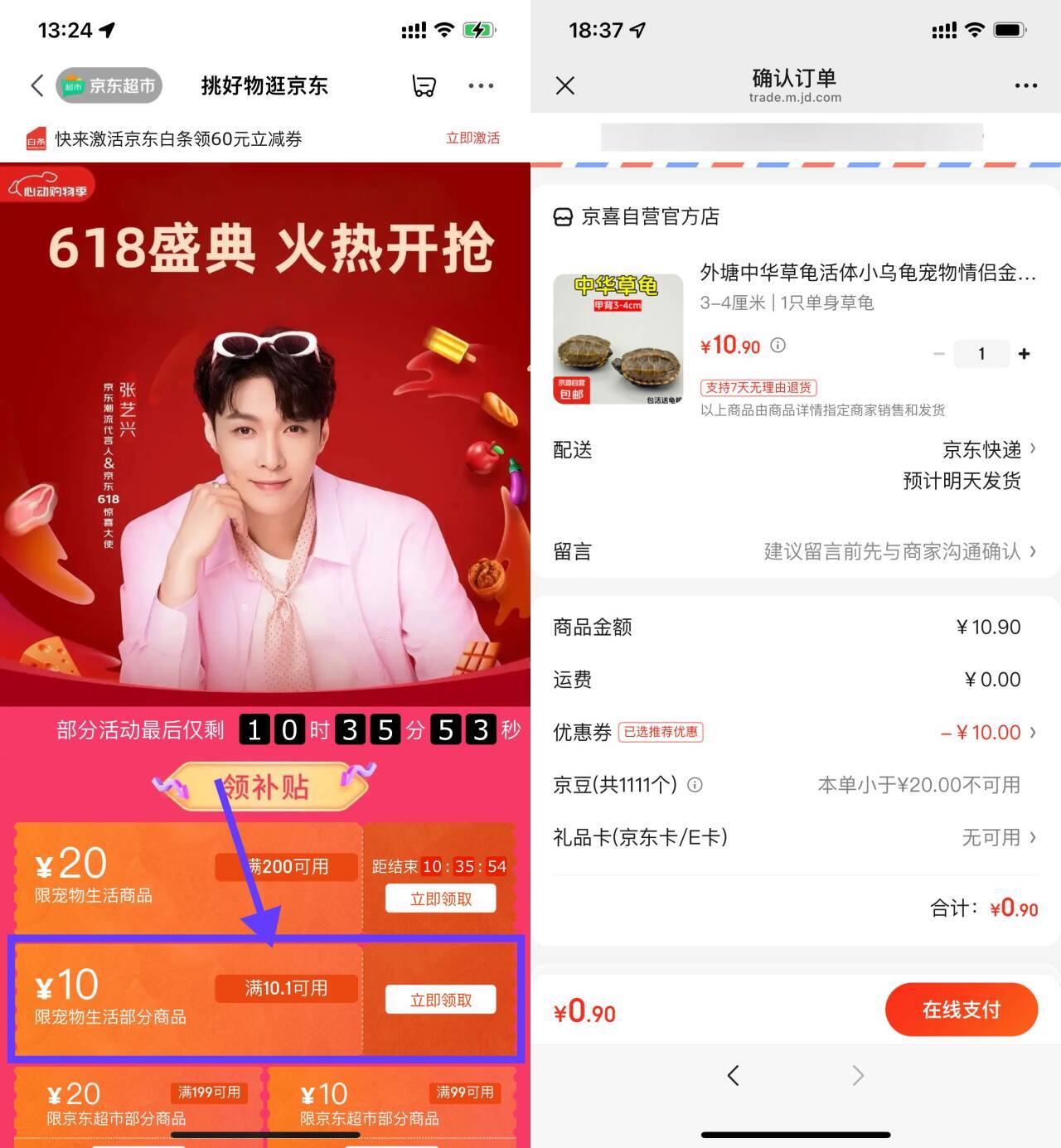 每天1只龟!京东打开活动->下拉领10亓宠物券,直接0.9亓拍下小乌龟即可