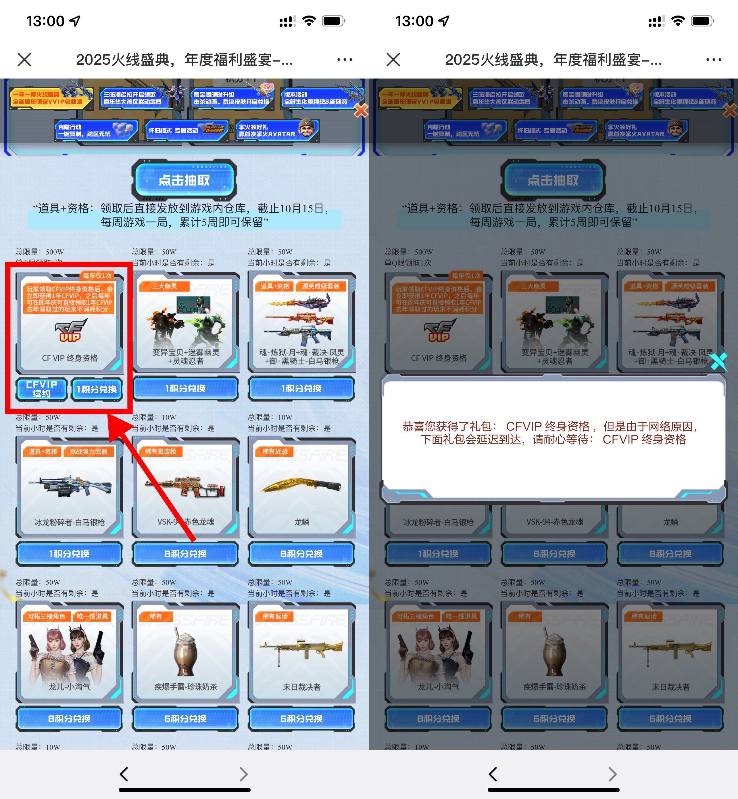 打开活动地址->下拉直接领CF会员,每年只需免费续期即可