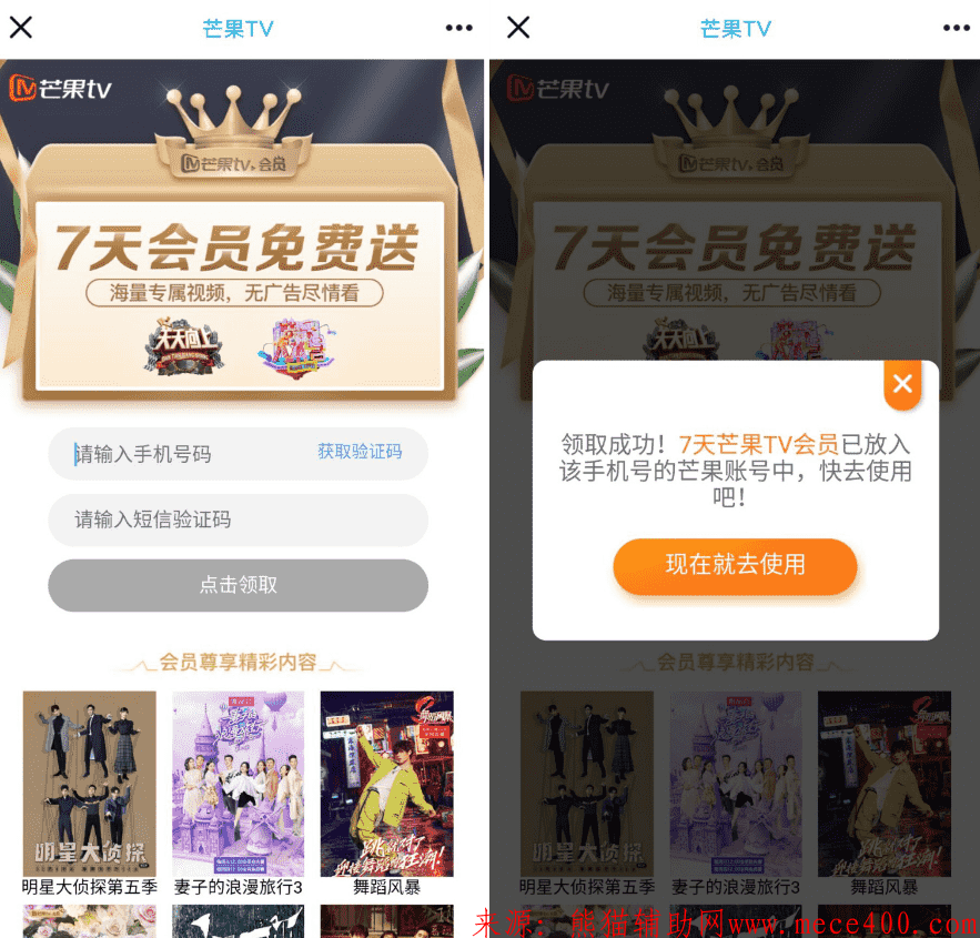 新老用户都可以领,这个是正式会员!可以免费观看芒果TV的会员剧!