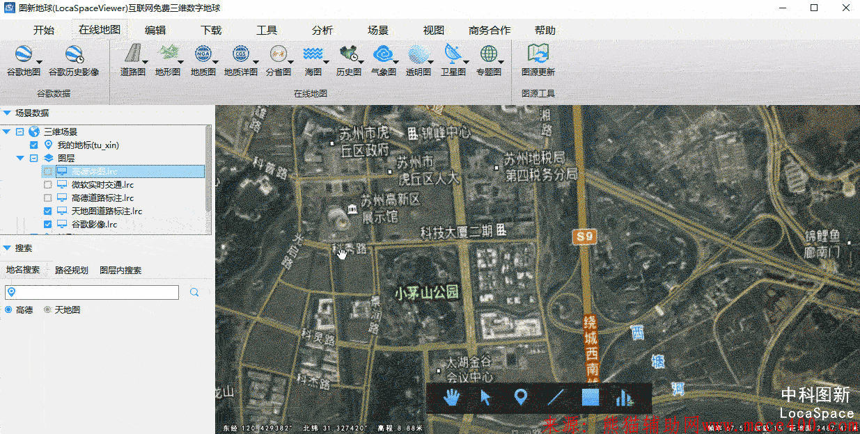 海量在线地图这款软件拥有丰富的地图资源,能支持加载上百张图源,并且加载后可无缝切换地图。另外还可通过地图与透明图的叠加达到各种所需要的效果。通常图源包括Google Earth影像、Google Earth地形;百度地图、影像、标注;天地图、影像、标注和微软地图、影像、标注等