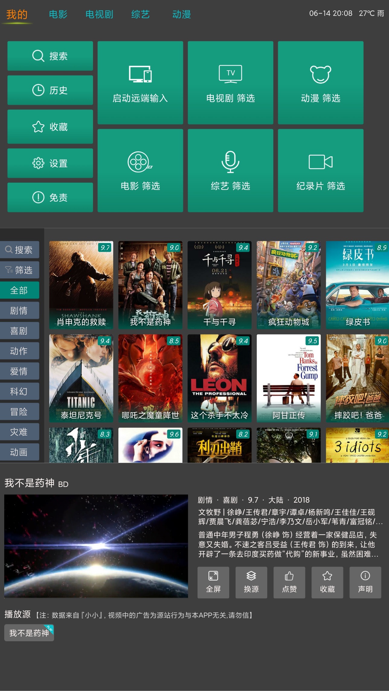 一款应用于电视、电视盒上的影视应用,TV影院几乎囊括了所有全网热门影视,可免费无广告观看院线大片、付费电影、HD高清资源。清新的UI界面设计风格,有简约风格、分页Tab风格,播放器解码库支持硬解码、哗哩哗哩JK解码、金山云KSY解码库,总的来说,就可以免费看大片~绿化版!