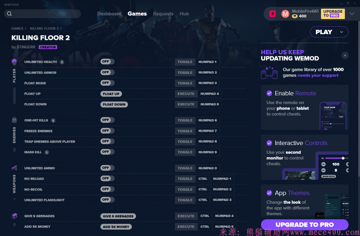 1、双击exe文件安装WeMod,如果已经安装直接搜索游戏英文名使用;