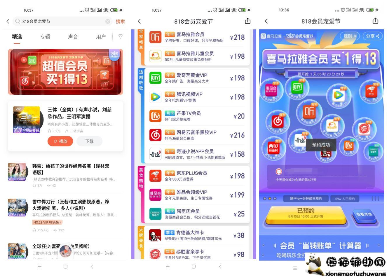 活动入口:喜马拉雅APP搜索“818会员宠爱节”->点横幅进入预约->具体看活动规则介绍