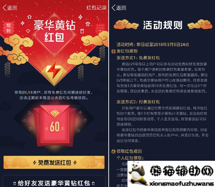这个需要有豪华黄钻LV5才能发红包,每个月都可以发一次,发了后可以自己去QQ空间领1份自己的!限安卓参加!
