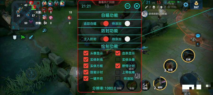 小白pro3.0添加了注入防封,自瞄防不了支持框架使用,功能绘制头像,射线,方框,技能倒计时,野怪倒计时,自瞄,上帝视角