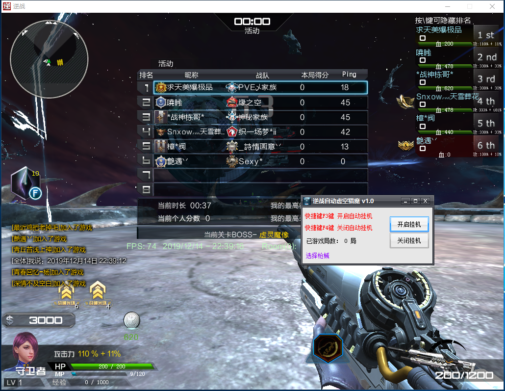 功能介绍:自动选择游戏模式,自动匹配,自动选枪挂机打怪,游戏结束自动重开,掉线自动重上游戏(这个要wg登录的才行,软件会自动点那个开始游戏,就上到游戏了),