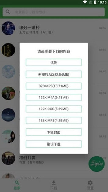 软件界面非常的舒适,不光可以试听和下载音乐,还可以下载歌词、封面、MV,功能非常强大。