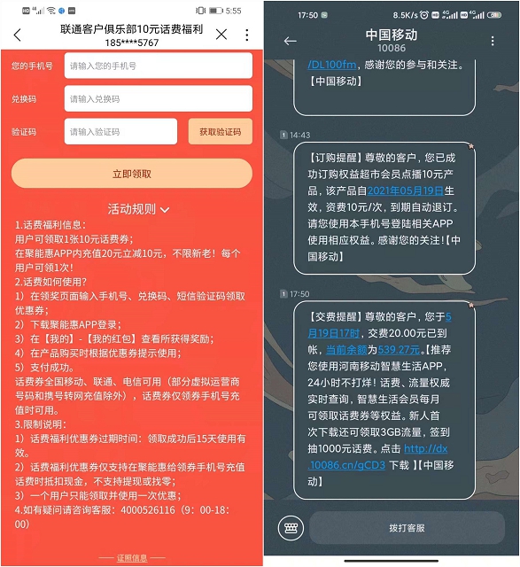 兑换码兑换到手机号后只能给该手机号充值,
