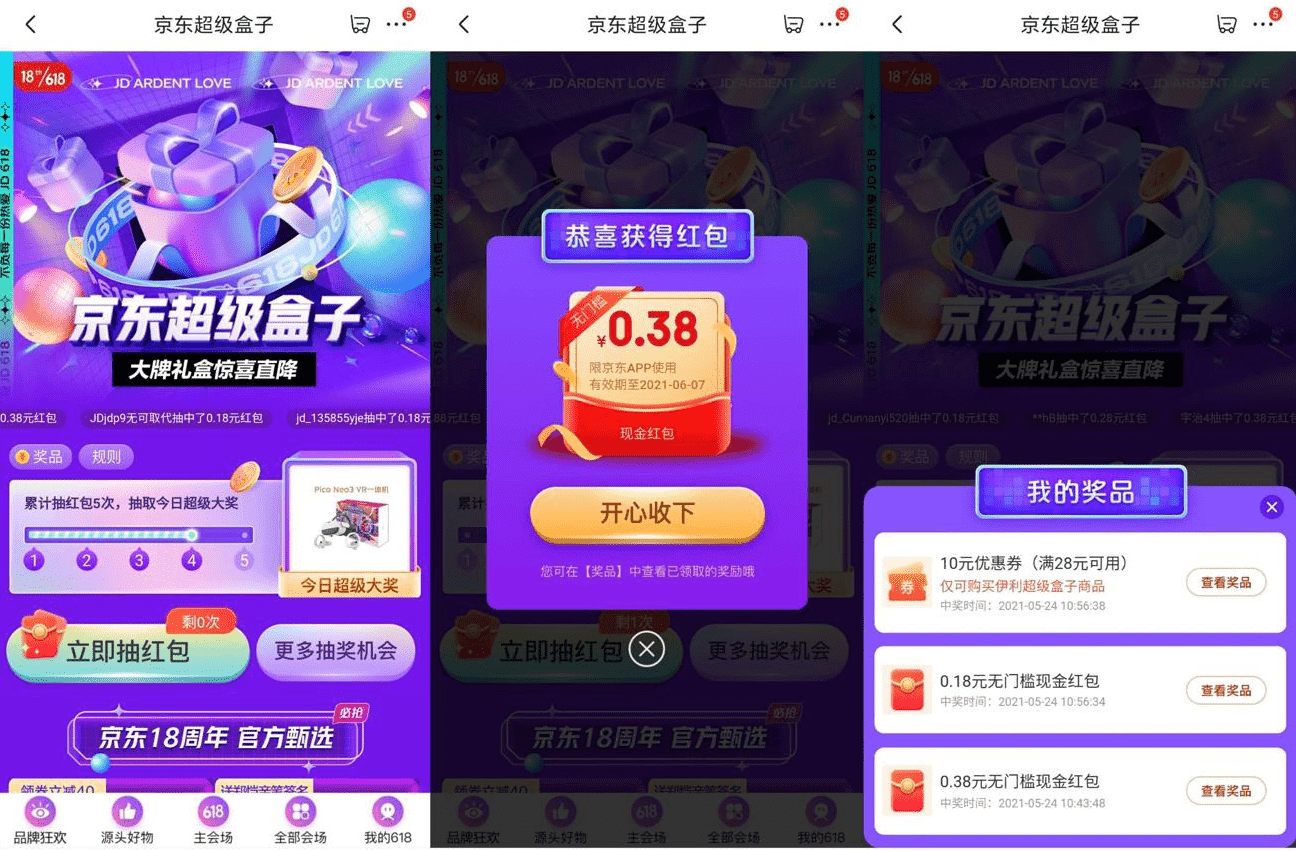 打开京东APP搜索“超级盒子”->进入活动->多次机会用完抽红包(无门槛抵扣)->每天可抽