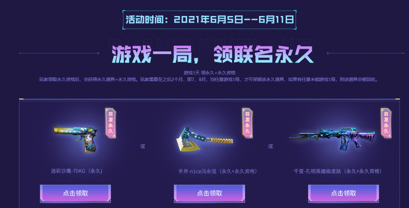 领取永久资格后,需在之后2个月(7、8月)均任意游戏一局才可保留永久