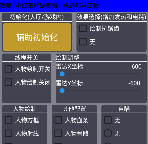 功能:人物方框/人物射线/背敌预警/人机识别/雷达/支持Root/光速虚拟机/框架