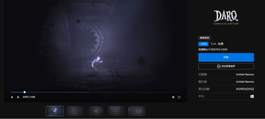 领取地址:https://www.epicgames.com/store/zh-CN/p/darq-complete-edition