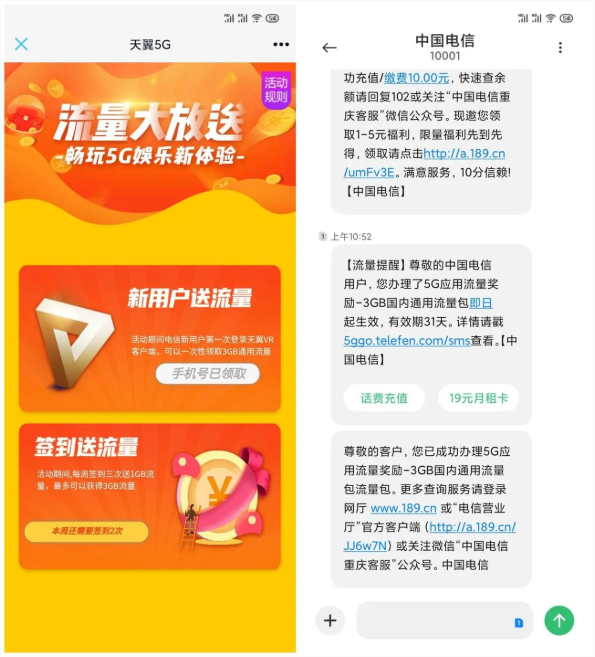 打开地址后直接输入手机号领取->无需下载APP->等会短信就会流量通知到账->有效期31天!